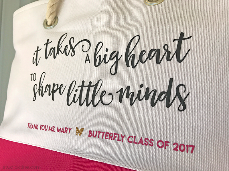 I love practical gifts and since I live in a plastic bag-free city, I thought it would be fun to create a tote bag recognizing the hard work of a teacher. You can never have too many totes, especially if it’s cute like this one!