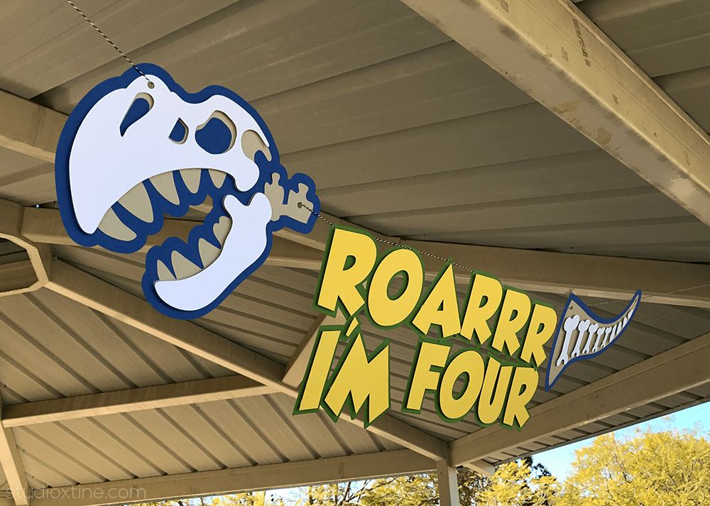 For his 4th birthday party, we did a dinosaur-themed party because he really liked the Disney movie The Good Dinosaur. While I did not use the characters from the show except for a figurine/toy as table decor, I turned to the Silhouette Design Store (SDS) for dinosaur-related shapes and designs. Personally, I prefer to do party themes that aren’t so specific like TV shows, characters, etc because it’s easier on my end since I’m the one who’s crafting it all. I stick with general shapes and repeat the party colors wherever I can.