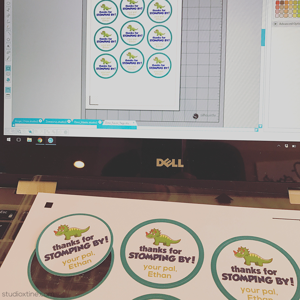 As I mentioned before in a previous post, the Silhouette CAMEO cutting machine is your party decor workhorse! Did you know it can also serve as a basic graphic design program. These favor tags were created to work like a Print and Cut design…simply create within Silhouette Studio and then send it to Silhouette to cut out.