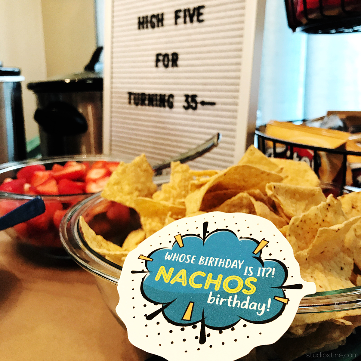 For the past couple months, I have been sneakily planning my hubs’ 35th birthday party. I really couldn’t wait until his 40th to throw a big bash. Having seen how much has changed (euphemism for how much we’ve aged) since having kids, I feel that a celebration midway through a decade is worth celebrating!