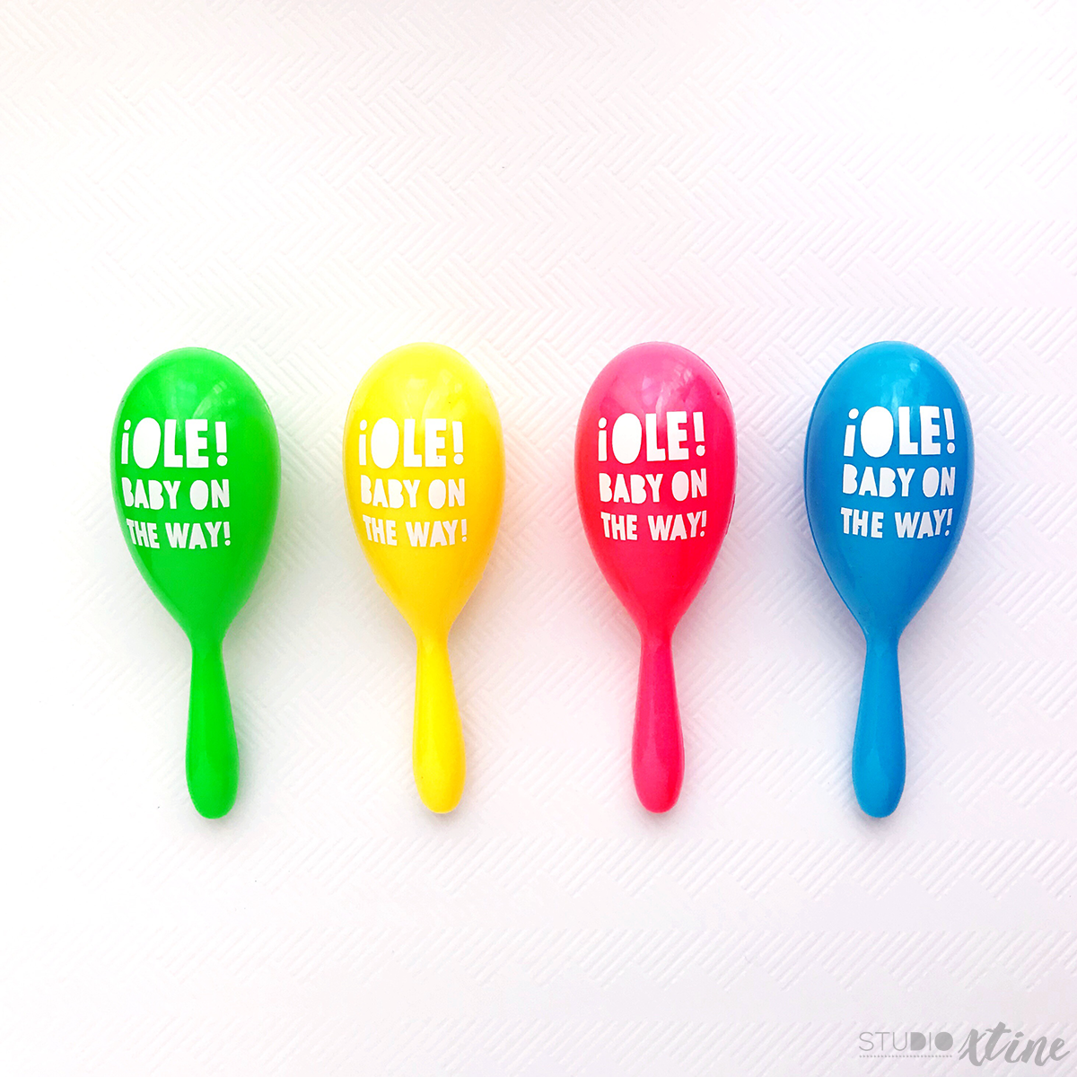 While shopping for party supplies for my friend’s Fiesta/Dragon Loves Tacos themed baby sprinkle, I came across Amols’ website and they had affordable and pretty close to authentic Mexican party decorations and supplies. Since a ton of little kids were attending the party, it was no brainer to add these neon maracas to my shopping cart! Before I even completed my purchase, I already knew I was going to add vinyl to them! I mean, look at that blank shiny surface…it was pretty much asking for it! Decorate me, por favor!